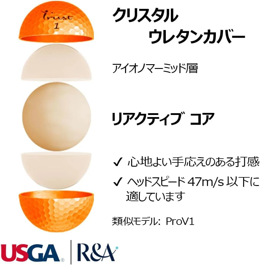 Trust Aurora Orange(オーロラオレンジ) ゴルフボール クリスタルウレタンカバー 1ダース